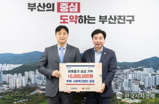 한국시사경제 부산취재본부 | 부산 부산진구는 9월 23일, 사회복지법인 동일(대표이사 김종각)에서 부산진구청을 방문하여 이웃돕기 성금 1,000만원을 기탁했다고 전했다.