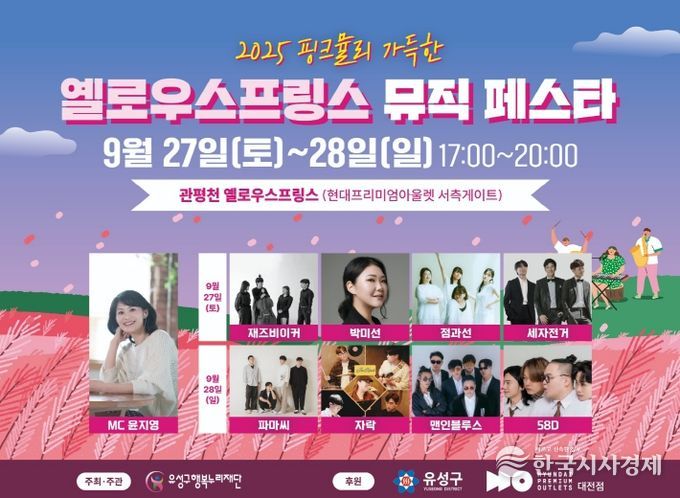 한국시사경제 대전취재본부 | 대전 유성구는 유성구행복누리재단(이사장 강도묵)이 오는 27일과 28일 이틀간 관평천 일원에서 ‘옐로우스프링스 뮤직 페스타’를 개최한다고 밝혔다.