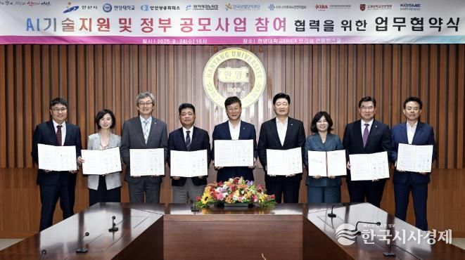 안산시는 지난 24일 한양대학교ERICA 프라임 컨퍼런스홀에서 ‘AI기술지원 및 정부 공모사업 참여 협력을 위한 업무협약식’을 개최했다고 25일 밝혔다.