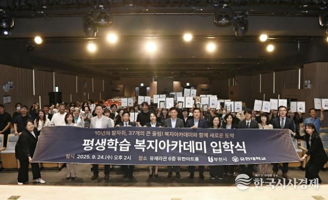 한국시사경제 경기취재본부 | 부천시는 지난 24일 유한대학교에서 ‘부천시·유한대학교 복지아카데미’ 입학식과 업무협약식을 열었다. 이번 행사는 조용익 부천시장과 장은영 유한대학교 총장을 비롯해 37개 동 지역사회보장협의체 위원장 등 150여 명이 참석한 가운데 진행됐다.