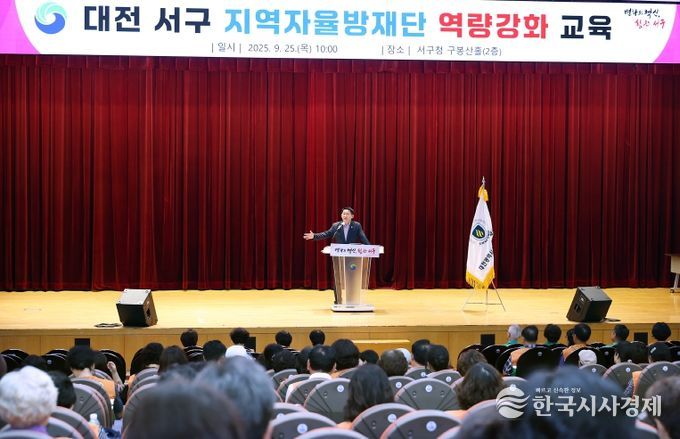 한국시사경제 대전취재본부 | 대전 서구은 이달 25일 구청 구봉산홀에서 지역자율방재단 역량 강화 교육을 진행했다.