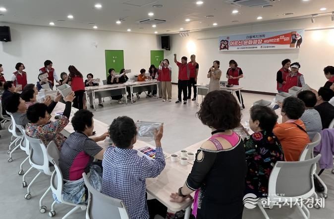 이날은 홀몸 어르신 20명이 새싹 인삼 화분, 꽃 비누 만들기, 노래 교실 및 웃음 치료를 함께 즐겼다.