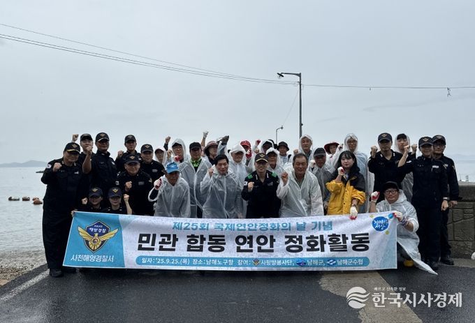 한국시사경제 김숙영 기자 | 사천해양경찰서는 ‘제25회 국제연안정화의 날’을 기념하여 25일(목) 오후, 남해군 미조면 노구항 일대 연안 정화활동을 실시했다고 밝혔다.