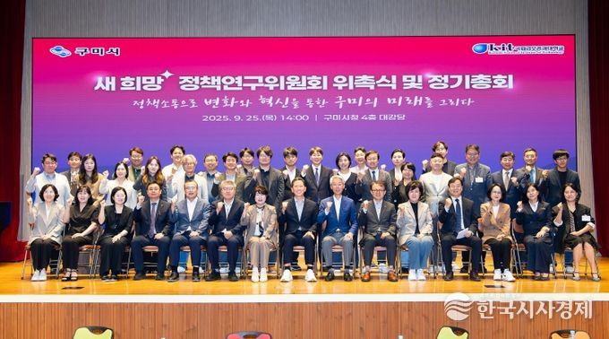 한국시사경제 경북취재본부 | 구미시가 전국 각 분야의 전문가와 함께하는 민·관 협치 기반 정책 연구 위원회인 '새 희망+ 구미시 정책연구위원회' 제2기 구성을 마치고 본격적인 활동을 시작했다. 9월 25일, 구미시청 대강당에서 신규 위원 17명에 대한 위촉장 수여와 정기총회가 진행되며, 향후 정책연구 방향과 운영 체계를 공유했다.