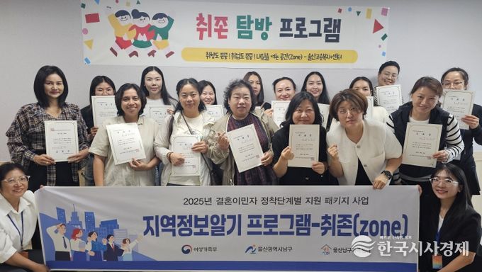 한국시사경제 울산취재본부 | 울산 남구 가족센터(센터장 이용희)는 울산고용복지플러스센터에서 ‘2025년 결혼이민자 취업지원을 위한 지역정보알기 프로그램‘취존(zone)’을 진행했다.