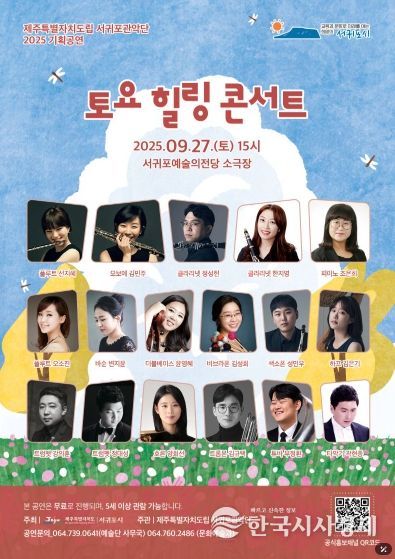 한국시사경제 한장선 객원기자 | 서귀포시는 오는 9월 27일 15시 서귀포예술의전당 소극장에서 서귀포관악단의 기획공연 '토요힐링콘서트'를 진행한다.