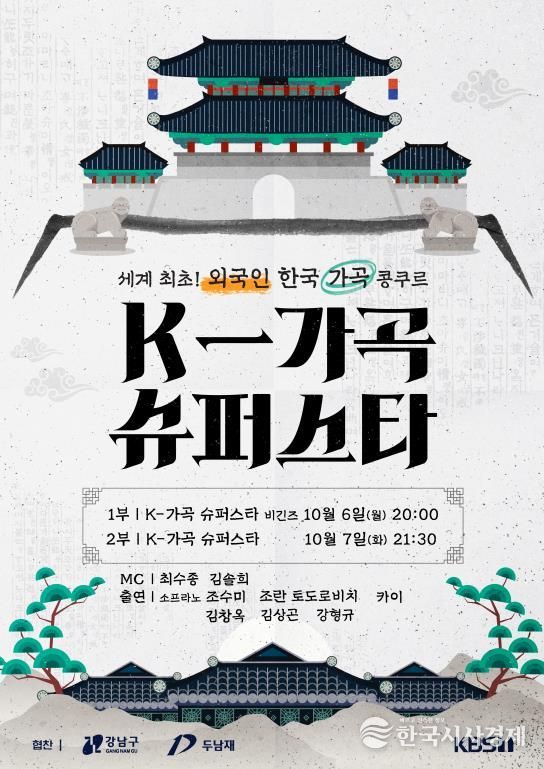 한국시사경제 권충현 기자 | 꿈이 모이는 도시, 미래를 그리는 강남구가 개청 50주년을 맞아 한국 가곡의 아름다움을 세계 무대에 알리는 글로벌 경연 'K-가곡 슈퍼스타'를 후원한다. 이번 행사는 오는 9월 30일 오후 7시 여의도 KBS홀에서 열리며, 전 세계 11개국 13명의 외국인 성악가가 무대에 올라 한국 가곡을 선보인다.
