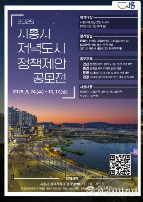 한국시사경제 경기취재본부 | 시흥시는 시민이 살고 싶은 저녁과 쉼이 있는 행복한 도시 시흥의 모습을 시민과 함께 구상하고 정책에 반영하고자 ‘2025년 시흥시 저녁도시 정책제안 공모전’을 진행한다.