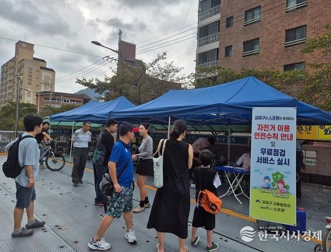 한국시사경제 부산취재본부 | 부산시 금정구는 지난 24일, 도시철도 1호선 온천장역 4번 출구 옆 북측 공영주차장 내에 있는 금정구 공영자전거 대여소에서 주민들의 안전한 자전거 이용을 위해 `자전거 무료 점검·수리 서비스'를 실시했다.