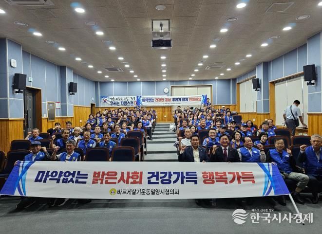 한국시사경제 윤경수 기자 | 바르게살기운동 밀양시협의회는 밀양시여성회관에서 임원, 읍·면·동 위원장과 위원 등 120여 명이 참석한 가운데 도덕성 회복 강연회 및 마약 퇴치 캠페인을 개최했다고 26일 밝혔다.
