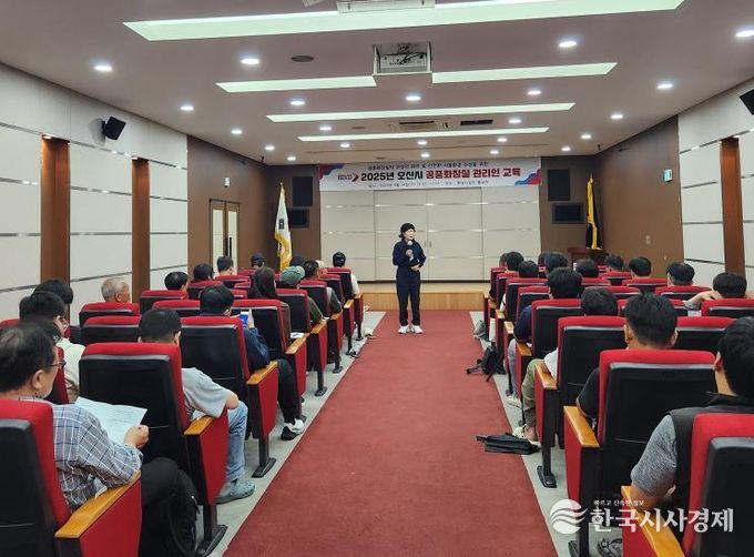 한국시사경제 권충현 기자 | 오산시는 지난 24일 오산시 환경사업소 홍보관에서 2025년 공중화장실 관리인 교육을 실시했다고 밝혔다. 이번 교육은 '오산시 공중화장실 등의 설치 및 관리 조례' 개정 이후 지난해에 이어 두 번째로 마련됐다.