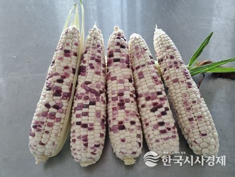 ‘얼룩찰1호’는 흰색과 보라색이 혼합된 얼룩무늬 알갱이를 가진 찰옥수수로 독특한 외관과 시각적 기호성으로 소비자들의 주목을 받고 있다.