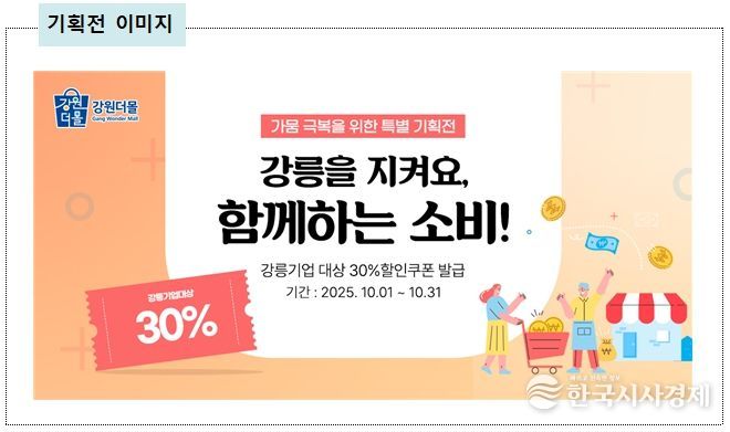 한국시사경제 이정이 기자 | 강원특별자치도 대표 온라인 쇼핑몰 강원더몰은 최근 장기 가뭄으로 어려움을 겪는 강릉 지역의 경제 활성화와 착한 소비를 유도하기 위해 10월 1일부터 31일까지 한 달간 '강릉 가뭄 극복 특별 기획전'을 진행한다.