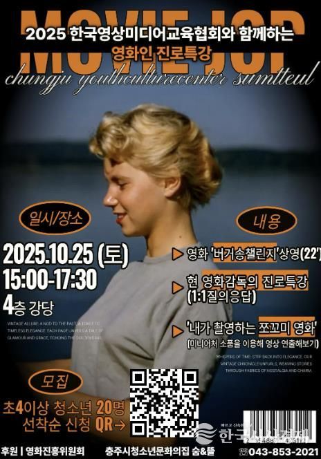 한국시사경제 충북취재본부 | 충주시청소년문화의집 숨·뜰은 청소년들에게 영상미디어 분야와 영화감독에 대한 진로 탐색의 기회를 제공하고자 오는 10월 25일 영화인 진로 특강 프로그램을 개최한다.