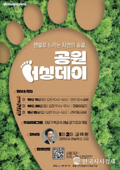 행사 참가비는 무료이며, 참여를 원하는 시민은 안산시청 누리집 ‘시정소식-새소식’란에 게시된 참여신청 QR코드로 접속해 사전 신청하면 된다. 자세한 사항은 안산시청 공원과로 전화 문의하면 안내받을 수 있다.