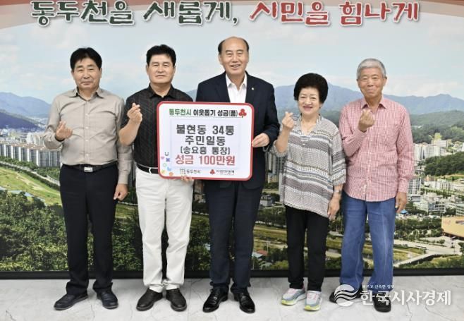 한국시사경제 경기북부취재본부 | 동두천시 불현동 34통 주민일동은 9월 25일 동두천시청을 방문해 지역 내 저소득 가정을 돕기 위한 성금 100만 원을 기탁했다.