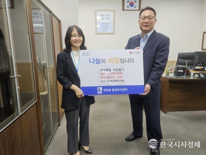 한국시사경제 사회팀 | 수원시 장안구 영화동 111-3구역 주택재개발정비사업조합은 지난 26일, 추석 명절을 맞아 지역 내 저소득층을 지원하기 위해 130만 원 상당의 후원금을 영화동 행정복지센터에 전달했다.