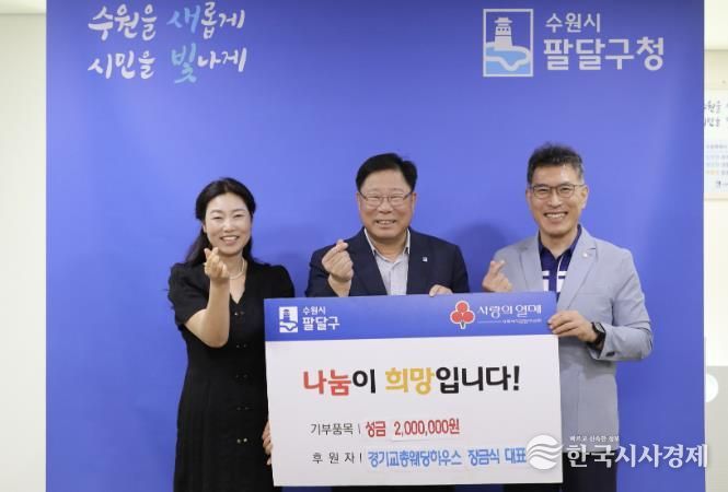 한국시사경제 사회팀 | 수원시 팔달구는 지난 26일, 경기교총웨딩하우스에서 기부하는 성금 200만원 전달식을 가졌다.