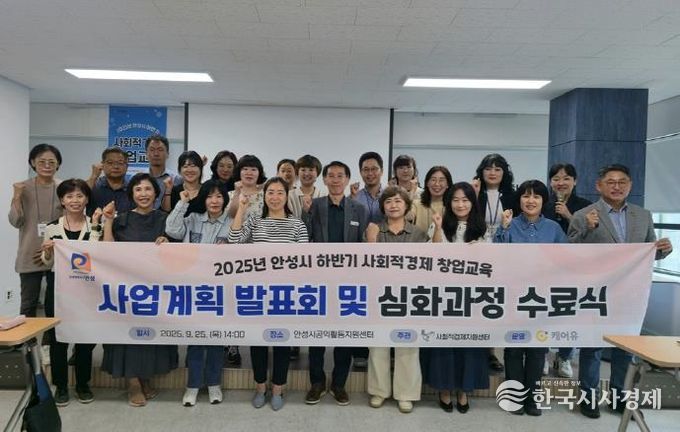 한국시사경제 경기취재본부 | 안성시는 9월 25일 안성시공익활동지원센터 교육장에서2025년 하반기 사회적경제 창업교육 심화과정 수료식을 성황리에 개최했다.