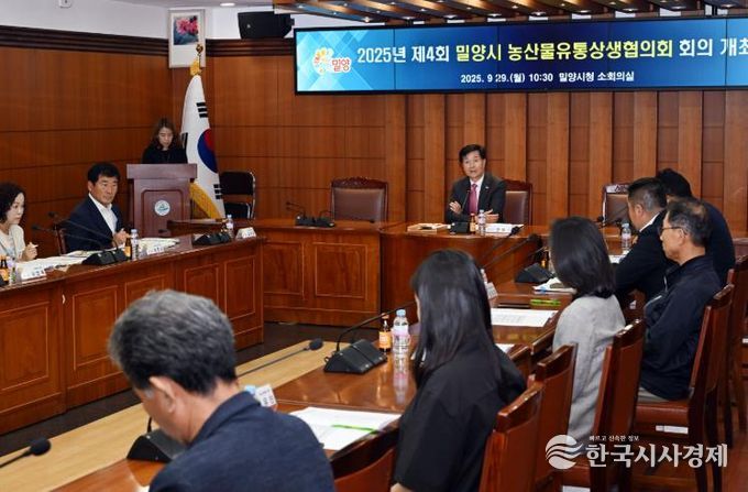 한국시사경제 윤경수 기자 | 경남 밀양시는 29일 시청 소회의실에서 ‘2025년 제4회 밀양시 농산물유통상생협의회’를 개최했다고 밝혔다.