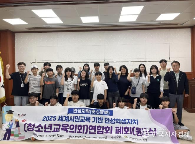 한국시사경제 경기취재본부 | 경기도안성교육지원청은 2025년 9월 27일 오후 1시, 교육지원청 별관 대회의실에서“안성의 빛나는 리더들”을 주제로 2025 안성학생자치(청소년교육의회)연합회 폐회(원)식을 성황리에 개최했다.