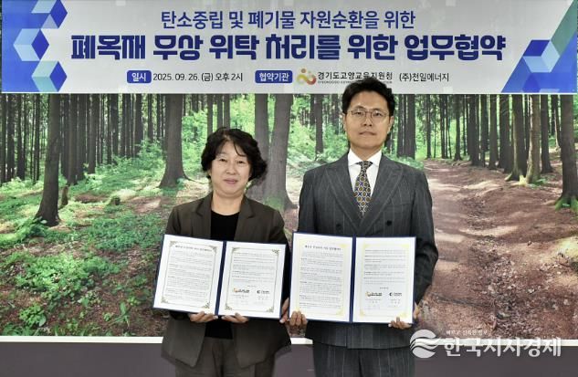 한국시사경제 경기북부취재본부 | 고양교육지원청은 26일 ㈜천일에너지와 폐목재 무상 처리 업무협약을 체결했다. 기존에는 교육지원청 주관 학교 공사 또는 학교 자체에서 발생하는 폐목재 및 수목 전정 작업으로 인한 임목폐기물은 비용을 들여 처리했지만, 이번 업무협약으로 학교에서 발생하는 폐목재를 안전하고 적법하게 처리, 자원순환을 촉진하고 학교 현장의 폐기물 처리 예산 절감에도 기여할 것으로 보고 있다.