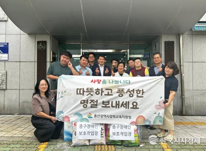 한국시사경제 울산취재본부 | 울산 강북교육지원청은 추석 명절을 앞둔 29일 지역 장애인기업과 청소년 돌봄 기관 2곳을 방문해 위문품을 전달했다.