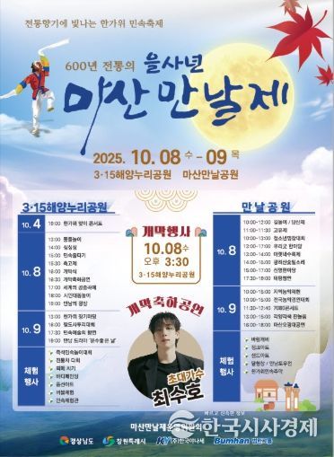 한국시사경제 경남취재본부 | 창원특례시는 오는 10월 8일과 9일, 마산합포구 소재 만날근린공원과 3.15해양누리공원에서 ‘을사년 마산만날제’를 개최한다고 밝혔다. 올해 마산만날제는 전통민속축제의 특색을 살리면서도 시민과 관광객 모두가 더욱 풍성하게 즐길 수 있도록 장소를 이원화해 진행된다.