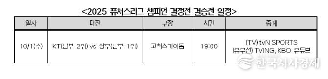 퓨처스리그 초대 챔피언이 결정될 결승전은 10월 1일(수) 오후 7시 고척스카이돔에서 열리며, 결승전은 TVING과 tvN SPORTS 및 KBO 유튜브를 통해 중계된다.