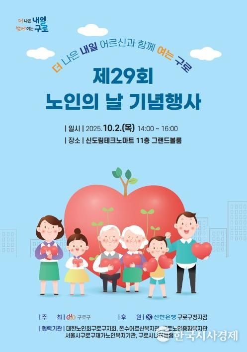 한국시사경제 김숙영 기자 | 구로구가 내달 2일 오후 1시에 신도림테크노마트 11층 그랜드볼룸에서 제29회 노인의 날 기념행사를 개최한다.