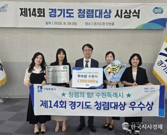 한국시사경제 사회팀 | 수원특례시가 제14회 경기도 청렴대상에서 우수상으로 선정됐다. 시상식은 29일 경기도청 단원홀에서 열렸다.