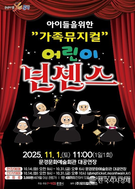 한국시사경제 이정이 기자 | 문화예술회관에서는 11월 기획공연으로 화끈하고 재미있는 수녀들의 이야기를 담은 뮤지컬 ‘어린이 넌센스’공연을 11월 1일 11:00에, 뮤지컬‘넌센스’공연을 11월 1일 17:00에 각각 문경문화예술회관 대공연장에서 진행한다.