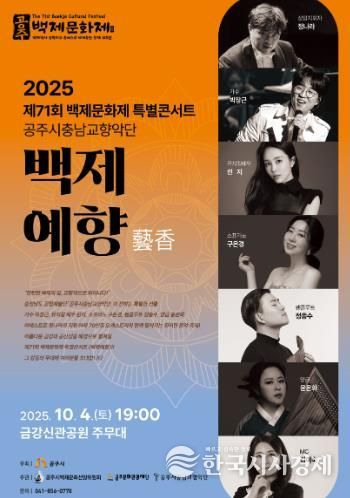 한국시사경제 오영주 기자 | 공주시충남교향악단은 제71회 백제문화제를 맞아 오는 10월 4일 저녁 7시, 공주 금강신관공원 주무대에서 특별콘서트 ‘백제 예향’을 개최한다고 밝혔다.
