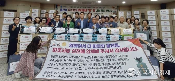 한국시사경제 사회팀 | 수원시 장안구 율천동은 지난 29일, 추석명절을 맞이하여 관내 어려운 이웃에게 따뜻한 나눔을 전하고자 우리동네 ‘찐’한 나눔행사 전달식을 개최했다.