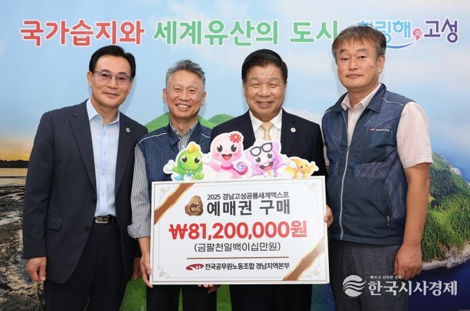 한국시사경제 윤광희 기자 | 경남 고성문화관광재단은 전국공무원노동조합 경남지역본부(본부장 강수동)가'2025경남고성공룡세계엑스포'의 성공적인 개최를 위해 8,120만 원 상당의 예매권 구매를 적극 지원했다고 밝혔다.