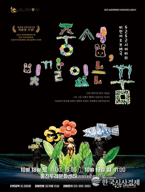 공연은 10월 18일 오전 11시, 오후 3시와 10월 19일 오전 11시 총 3회 진행된다. 36개월 이상 관람이 가능하며 전석 1만원이다. 티켓예매는 김포문화재단 누리집에서 가능하다.