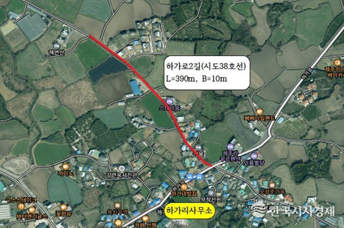 한국시사경제 이정이 기자 | 제주시는 애월읍 하가리 시도 38호선(L=390m, B=10m) 구간에 대한 도로 확·포장 공사를 마무리하고 9월 준공했다.