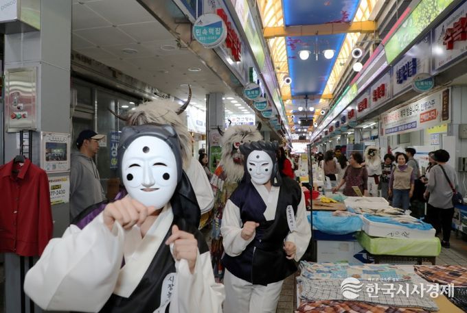 한국시사경제 경북취재본부 | 9월 29일 오후, 안동 구시장 일대가 흥겨운 퍼레이드로 활기를 띠었다. 안동국제탈춤페스티벌 기간 동안 안동의 구시장, 신시장, 용상시장이 매일 흥겨운 퍼레이드 무대로 변신한다. 축제 개막일을 제외한 9일간 매일 이어지는 시장 퍼레이드는 상인과 시민, 관광객이 함께 어울리며 시장 골목을 축제의 한복판으로 만든다.