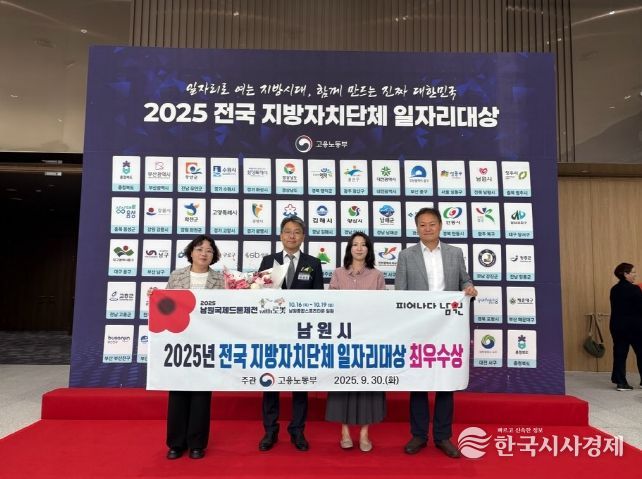 한국시사경제 전북취재본부 | 남원시는 9월 30일 고용노동부 주관으로 청주 오스코에서 열린 ‘2025년 전국 지방자치단체 일자리대상’에서 최우수상을 수상했다고 밝혔다.