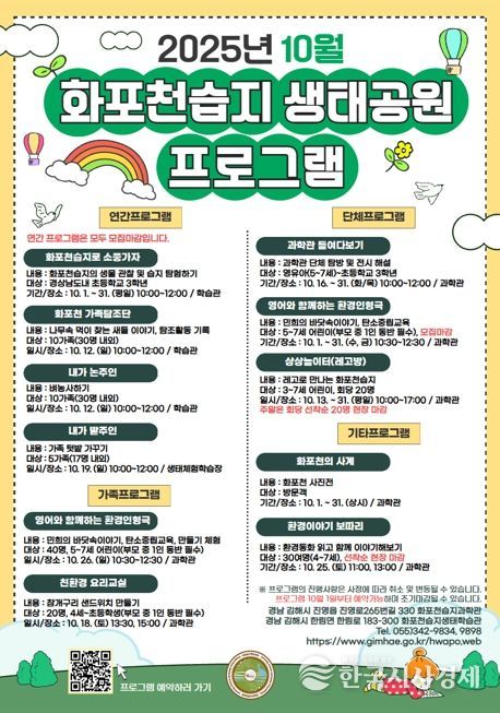 이용규 환경정책과장은 “화포천습지 과학관은 단순 관람 공간을 넘어 생태 보전과 교육을 함께 실천하는 공간”이라며 “우리 아이들과 시민들이 자연 속에서 배우고 즐기며 람사르습지 도시 김해를 만끽하길 바란다”고 말했다.