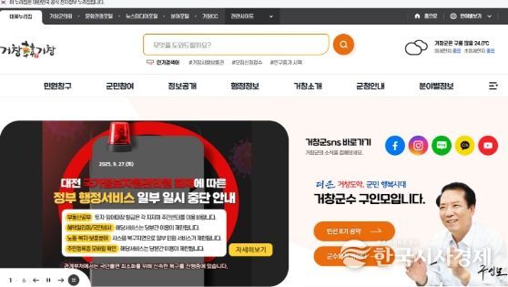 한국시사경제 경남취재본부 | 거창군은 지난 26일 발생한 대전 국가정보자원관리원(국정자원) 화재와 관련해, 군민 불편을 최소화하고 안정적인 행정서비스를 제공하기 위해 총력을 기울이고 있다고 30일 밝혔다.
