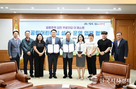 한국시사경제 오영주 기자 | 김천시는 9월 29일 2층 접견실에서 공동주택 김천 푸르지오 더 퍼스트 어린이집 입주자대표회의(회장 유민상)와 국공립어린이집 설치‧운영을 위한 업무협약을 체결했다.