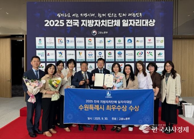 한국시사경제 사회팀 | 수원특례시가 고용노동부 주관 ‘2025년 전국지방자치단체 일자리 대상’ 지역일자리 목표 공시제 부문에서 최우수상(고용노동부장관상)을 받았다.