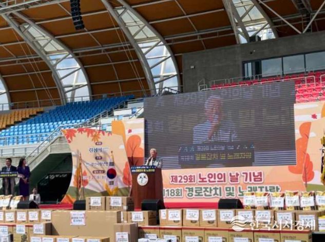 한국시사경제 문화팀 | 경산시는 10월 경로의 달을 맞아 27일 경산시민운동장에서 관내 어르신 7,000여 명을 모시고 제29회 노인의 날 기념행사 및 제18회 경로잔치를 개최했다.