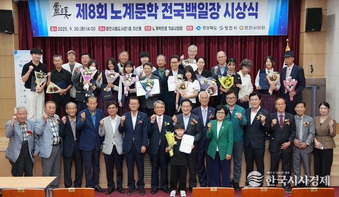 한국시사경제 경북취재본부 | 영천시는 노계박인로기념사업회가 주최·주관하고 영천시가 후원한 ‘2025년 제8회 노계문학전국백일장 시상식’이 30일 시립도서관 지산홀에서 성황리에 열렸다고 밝혔다.