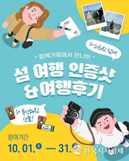 한국시사경제 문화팀 | 거제시 시정소식지‘함께거제’는 시민과 독자의 참여를 확대하고, 거제 섬 여행의 매력을 널리 알리기 위해‘섬 여행 인증샷 & 여행후기 이벤트’를 10월 한 달간 진행한다.