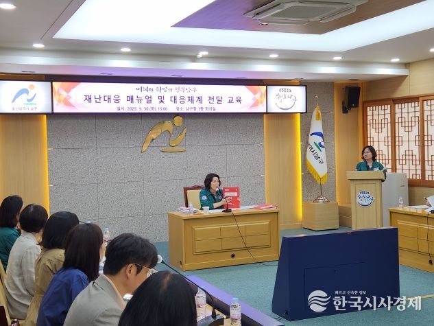 한국시사경제 울산취재본부 | 울산 남구는 30일 ‘남구 현장 맞춤형 재난대응 매뉴얼 및 대응체계 교육'을 실시했다.
