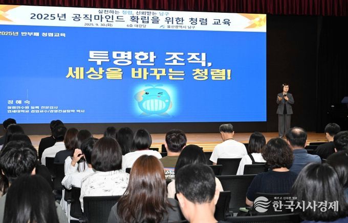 한국시사경제 울산취재본부 | 울산 남구는 30일 구청 6층 대강당에서 전 직원 대상으로‘공직마인드 확립을 위한 제2차 청렴교육’을 실시했다.