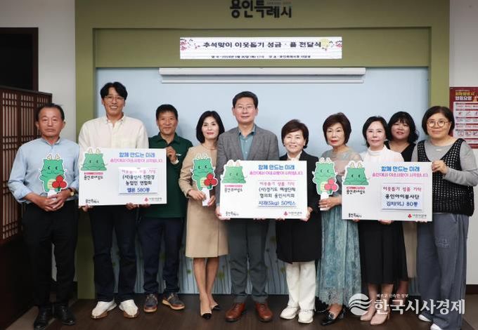 이상일 시장은 “추석 명절을 앞두고 어려운 이웃에게 따스한 온정의 손길을 건넨 용인시친환경농업인연합회, 경기도여성단체협의회 용인시지회, 용인아이봉사단에 감사하다”며 “여러분의 소중한 선행이 어려운 이웃에게 실질적인 도움이 될 수 있도록 기탁한 성품을 잘 전달하겠다”고 말했다.