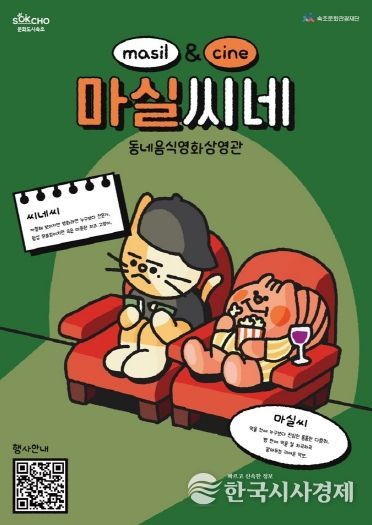 ‘마실씨네’는 소상공인 가게에서 영화를 상영하며 다양한 음식을 함께 즐길 수 있도록 기획된 프로그램이다. 이를 통해 시민과 관광객에게 새로운 문화 체험을 제공하고, 지역 상권 활성화와 속초의 음식문화 확산에도 앞장선다는 계획이다.